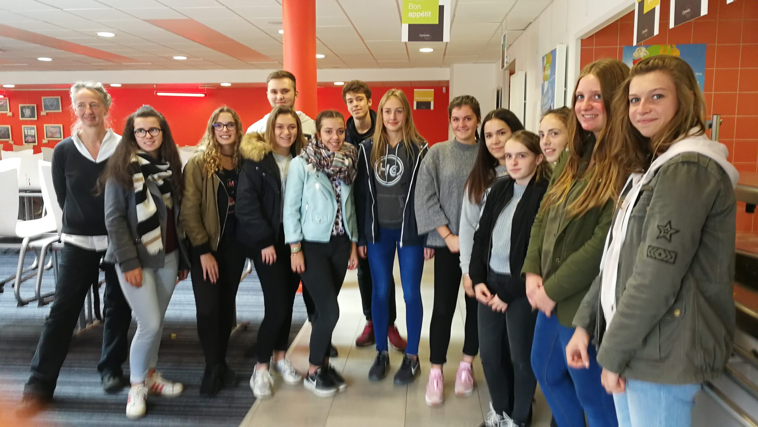 Puis, c’est autour d’un bon repas au self que les derniers détails de cette mobilité européenne ont été réglés ; l’occasion pour les élèves de dialoguer avec Jutta Stalfort, Présidente du comité de jumelage Allemand, afin qu’elle réponde à toutes leurs interrogations sur les structures pour enfants ou personnes âgées qui les accueilleront outre Rhin.